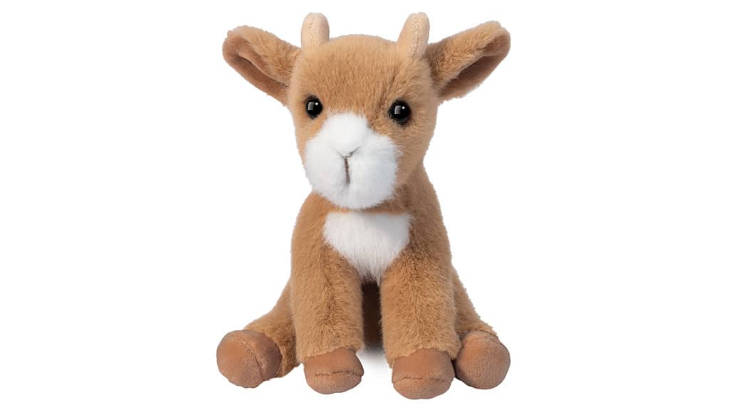 Carry residence farm attraction with these 5-inch plush barnyard pals, together with a goat (pictured), lamb, pig, and cow.