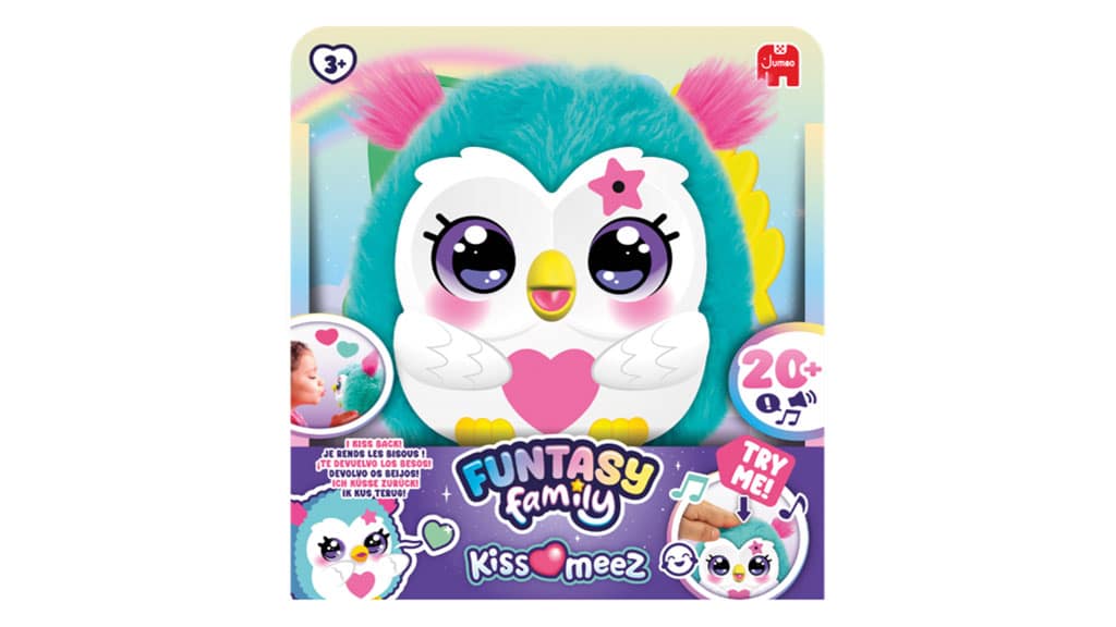 Kiss-meez Owl options greater than 30 sounds and reactions, guffawing and sending kisses when youngsters work together with it.