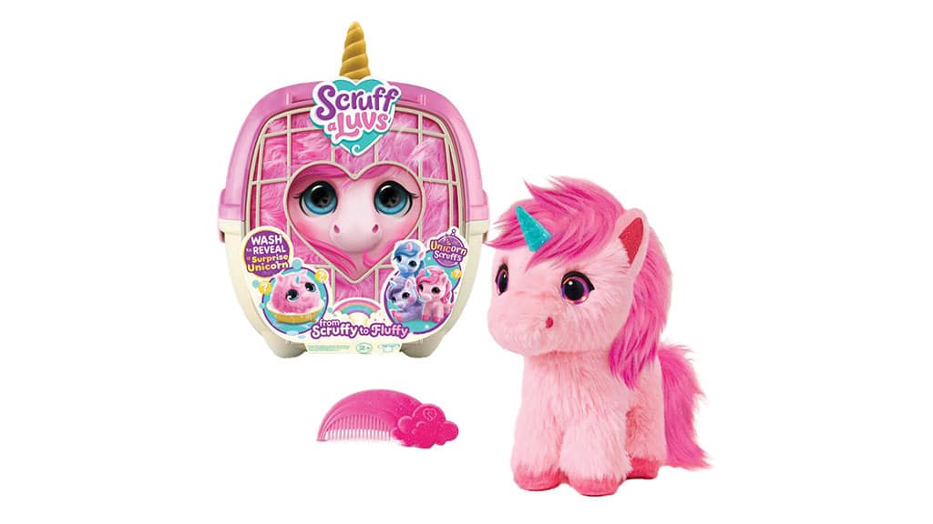 Youngsters can deliver unicorn magic residence with ScruffaLuvs. Youngsters wash, dry, and groom this scruffy ball right into a fluffy unicorn.