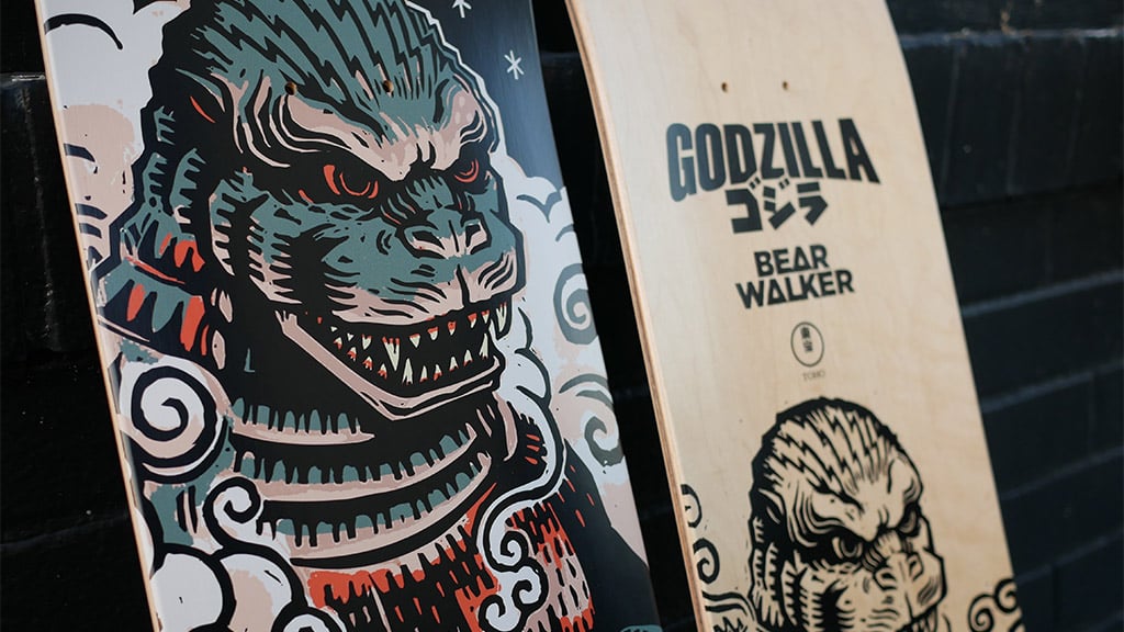 Followers can rock their favourite kaiju as they shred. | Supply: Bear Walker