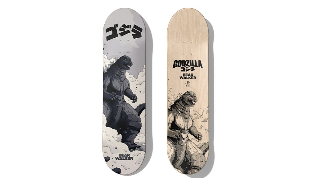 Every collectible captures the Titan of Terror in new paintings by Assault Peter, Rupert Gruber, and City Aztec. The spotlight of the lineup is Assault Peter’s Burning Godzilla and Destoroyah Collector’s Version Cruisers, every that includes a limited-edition design of the monster rising from the clouds. Solely 30 Godzilla decks and 100 Destoroyah decks can be found, and every contains customized wheels, vehicles, and a holographic certificates of authenticity.