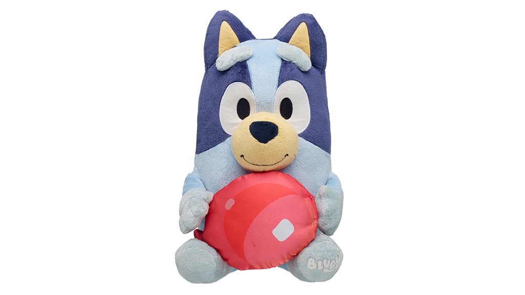This 15-inch Bluey plush features a crimson balloon accent. | Supply: Construct-A-Bear Workshop