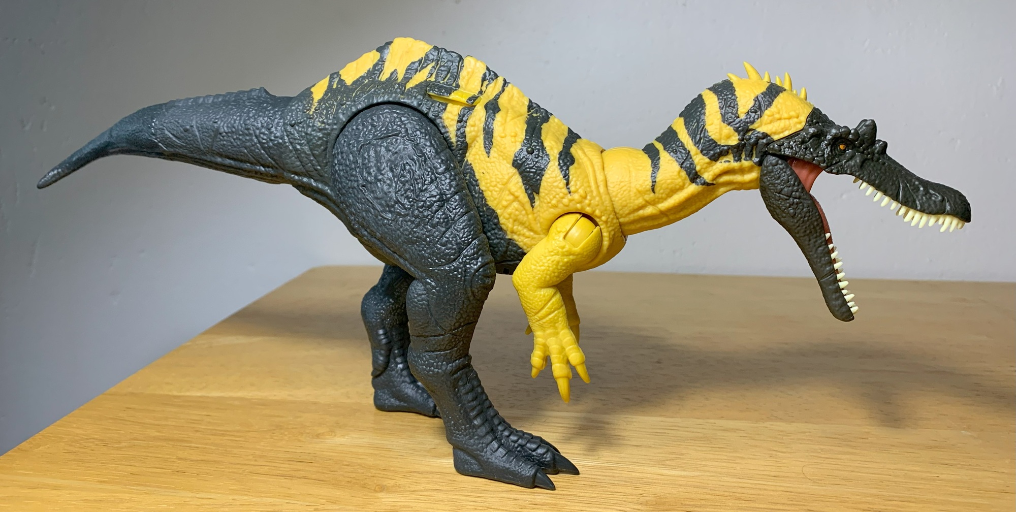 Described in 2021, Ceratosuchops is an early Cretaceous spinosaur identified from the UK’s Wessex Formation. It’s solely identified from some fragmentary bits of cranium, together with a virtually full braincase, and a few tail vertebrae. Regardless of these scant stays two toys now exist of this genus, one from CollectA and one other from Mattel. In the present day we’re taking a look at Mattel’s, which I waffled back-and-forth on till it went on sale on amazon for a worth I couldn’t refuse. Ceratosuchops was described the identical yr as Riparovenator, one other spinosaur from the Wessex Formation that thus far lacks any toy illustration. These two spinosaurs are thought-about extra intently associated to Suchomimus than to Baryonyx. Its full title is a badass one, Ceratosuchops inferodios means “horned crocodile face, hell heron”.