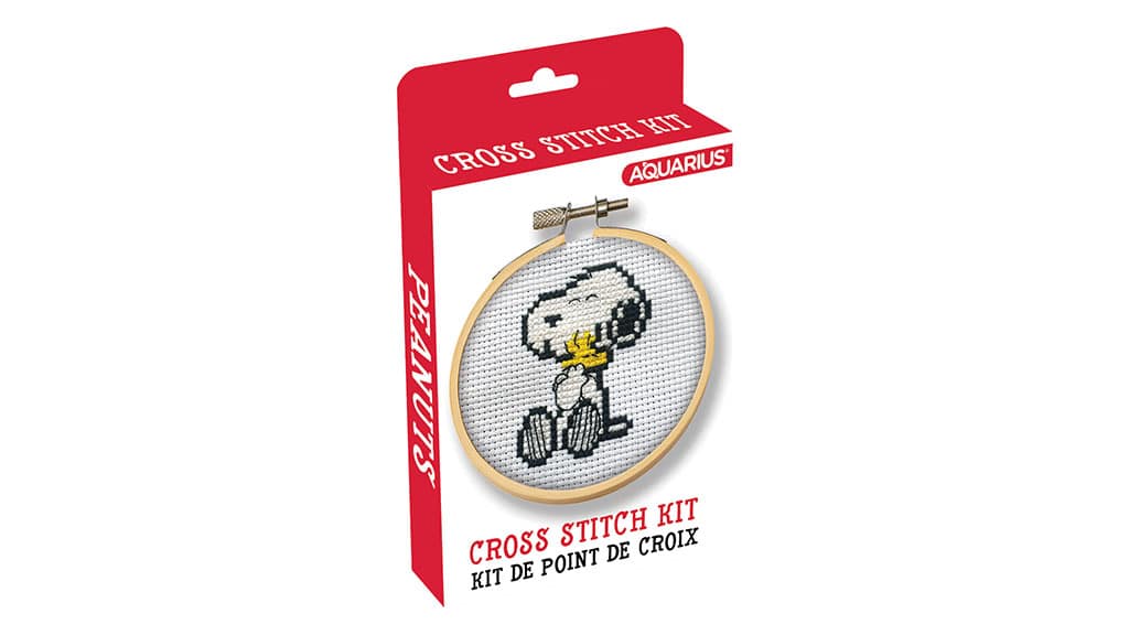 Followers of the Peanuts crew can create a cross-stitch masterpiece that includes Snoopy and Woodstock. The equipment contains two needles, a sample, coloured threads, a fabric, and a bamboo ring.