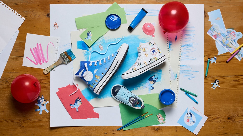 Children can step into new adventures with Bluey-inspired footwear. In partnership with BBC Studios and Ludo Studio, Converse brings new footwear to households with vibrant prints, character graphics, and playful particulars.