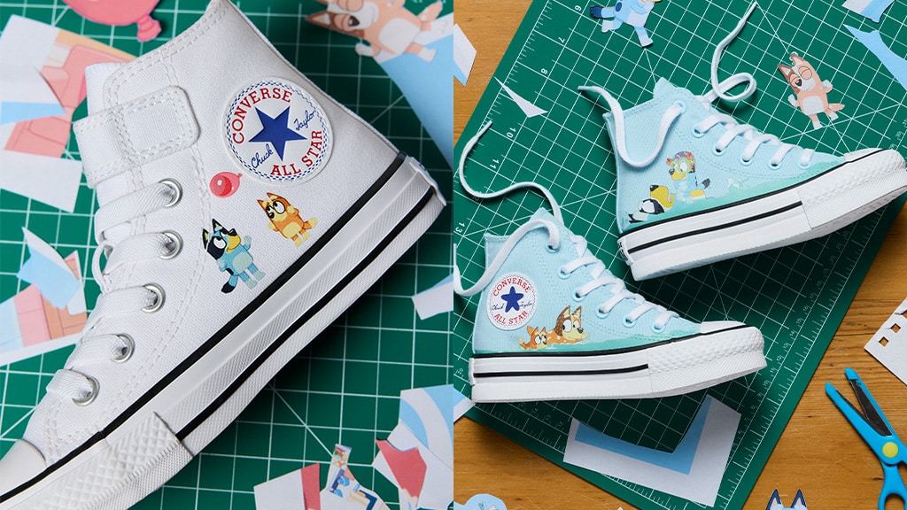 Children can put on Bluey on one shoe and Bingo on the opposite. | Supply: Converse