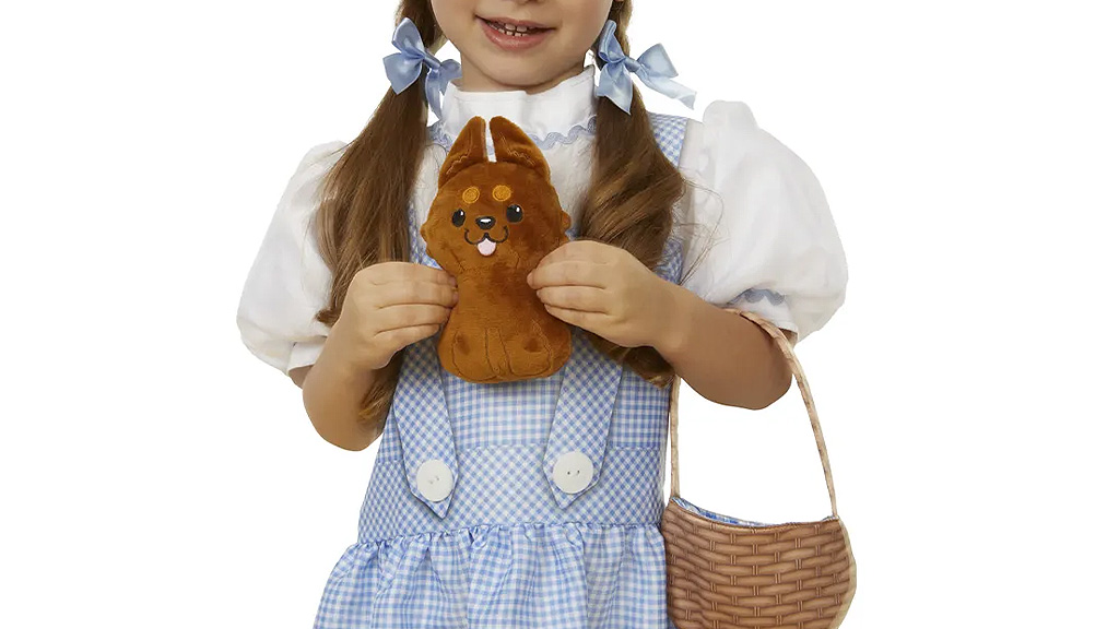 This set options all of the necessities youngsters want to finish their Dorothy costumes. The set features a pair of ruby slippers, a basket, and a Toto plush.
