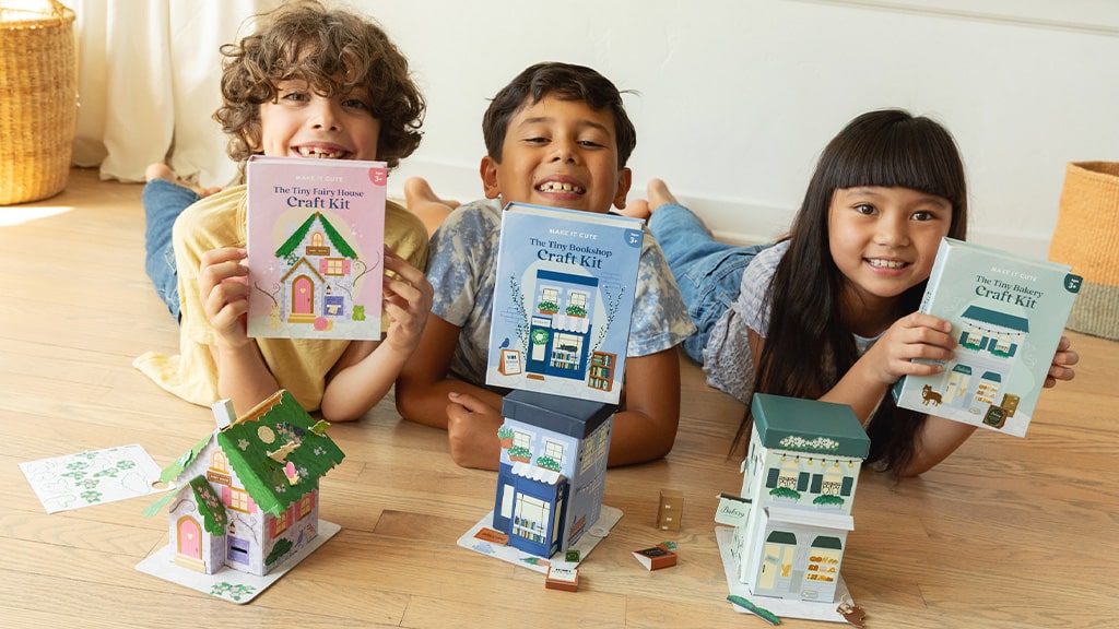 Youngsters can construct little cities for his or her dolls, plush, and extra with Make It Cute’s newest mini assortment. Nice for make-and-play experiences, the Tiny Home Craft Kits are eco-friendly DIY kits the place children can construct and adorn mini buildings.