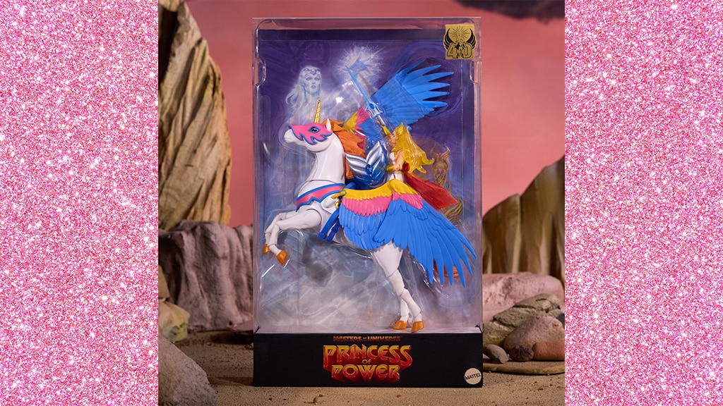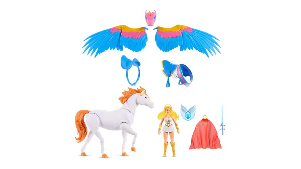 She-Ra and Swift Wind are paired collectively for the primary time in Matte’s Origins line. This set celebrates She-Ra’s fortieth anniversary and consists of her Sword of Energy and equipment. It is available in deluxe packaging.