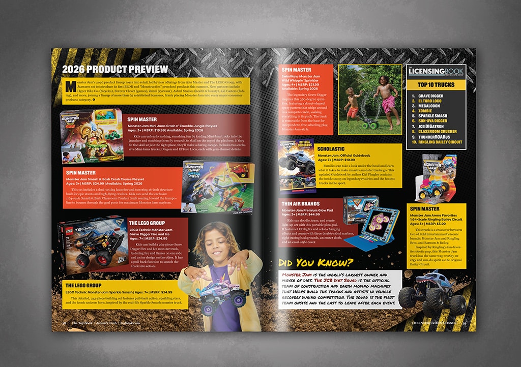 Publishing is accelerating alongside the model’s broader enlargement. Previously 18 months, the Monster Jam publishing program has grown from two titles to 55. Scholastic, which beforehand bought Monster Jam titles solely by way of its faculty guide gala’s, expects to ship multiple million books in 2026.