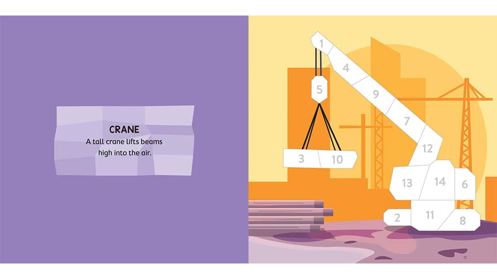 Youngsters can construct building automobiles with this paint-by-sticker set. The Building Web site ebook options colourful machines like a steamroller, a cement mixer, and a dump truck. Every web page additionally features a description of every building automobile.