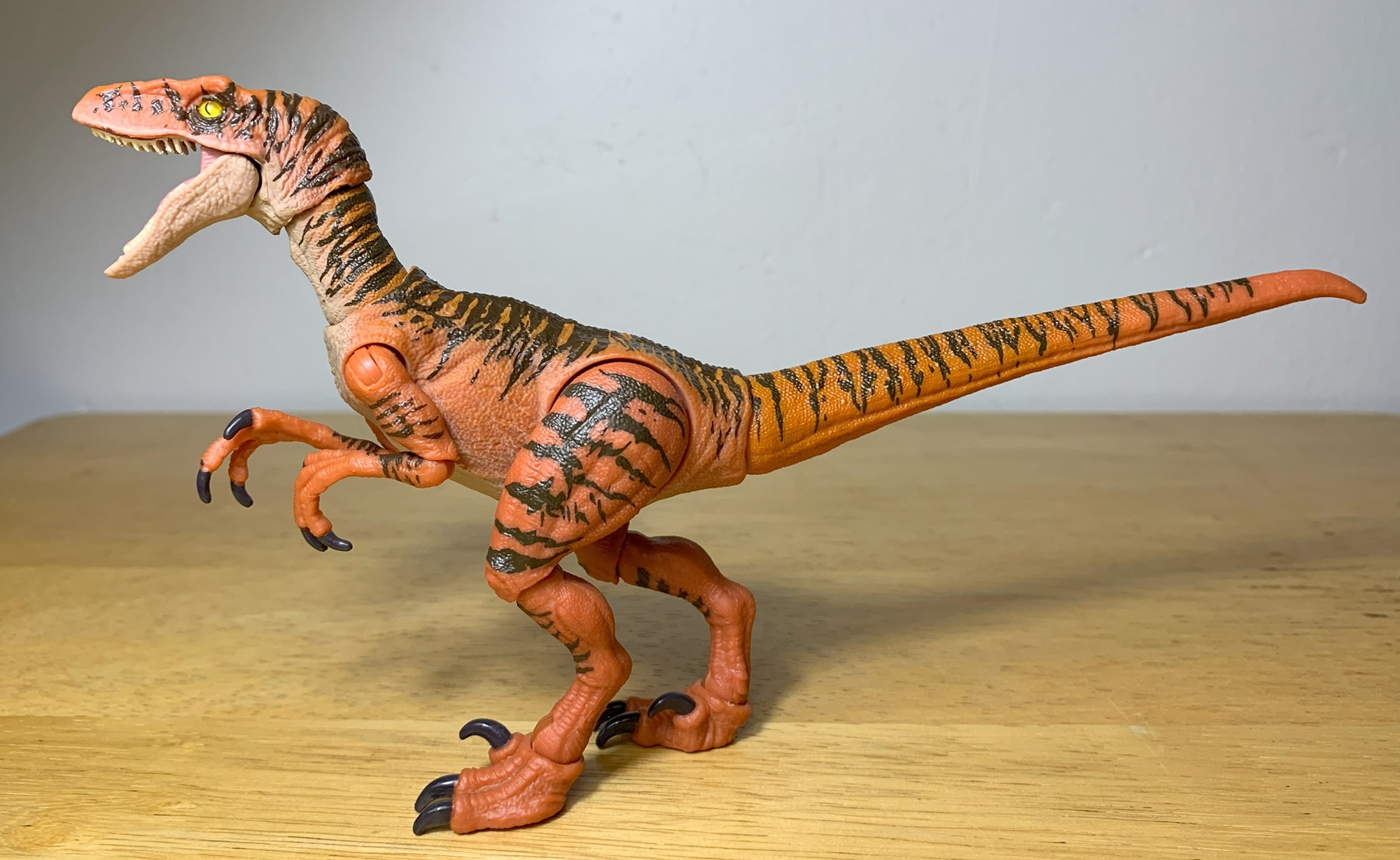 Some awful articulation apart, the determine seems to be in any other case incredible. I’ve seen some complaints about reused components from different raptor figures, and even the Atrociraptor determine, however I actually see nothing mistaken with recycling components from figures of the identical animal, or related ones. I don’t have the Hammond Assortment Atrociraptor so can’t evaluate them straight. I’ve additionally seen some declare that the lacrimal crests are too pronounced, however I’m pictures of the tiger raptors as I sort and I see no drastic distinction between them and this determine. They could be barely extra exaggerated right here.